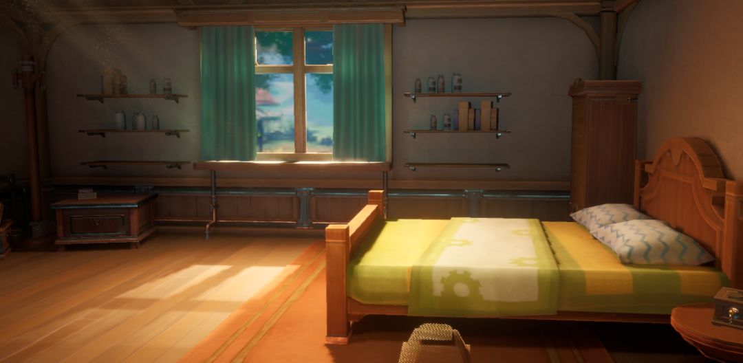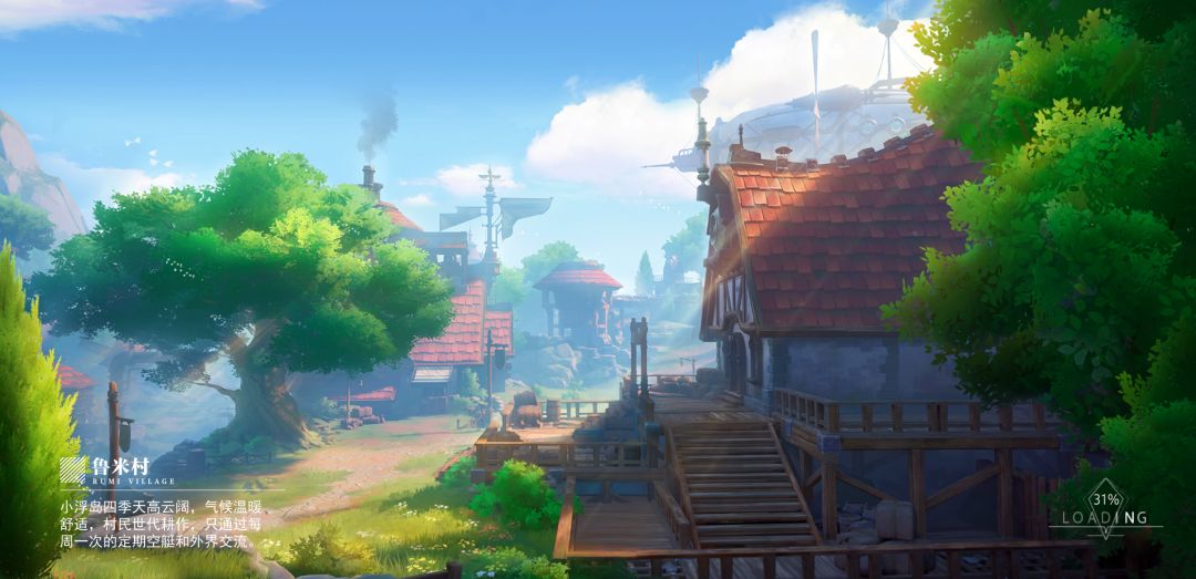 和煦温暖的阳光照拂在村庄,暖色调的鲁米村除了一两处之外显得格外明媚。风车缓缓转动,远去的空艇结束了一周一次的信息传递,村庄里的人们不在意地各自忙活着。偶尔会有孩童为捉住蝴蝶而摔倒惹来大人们的笑骂......