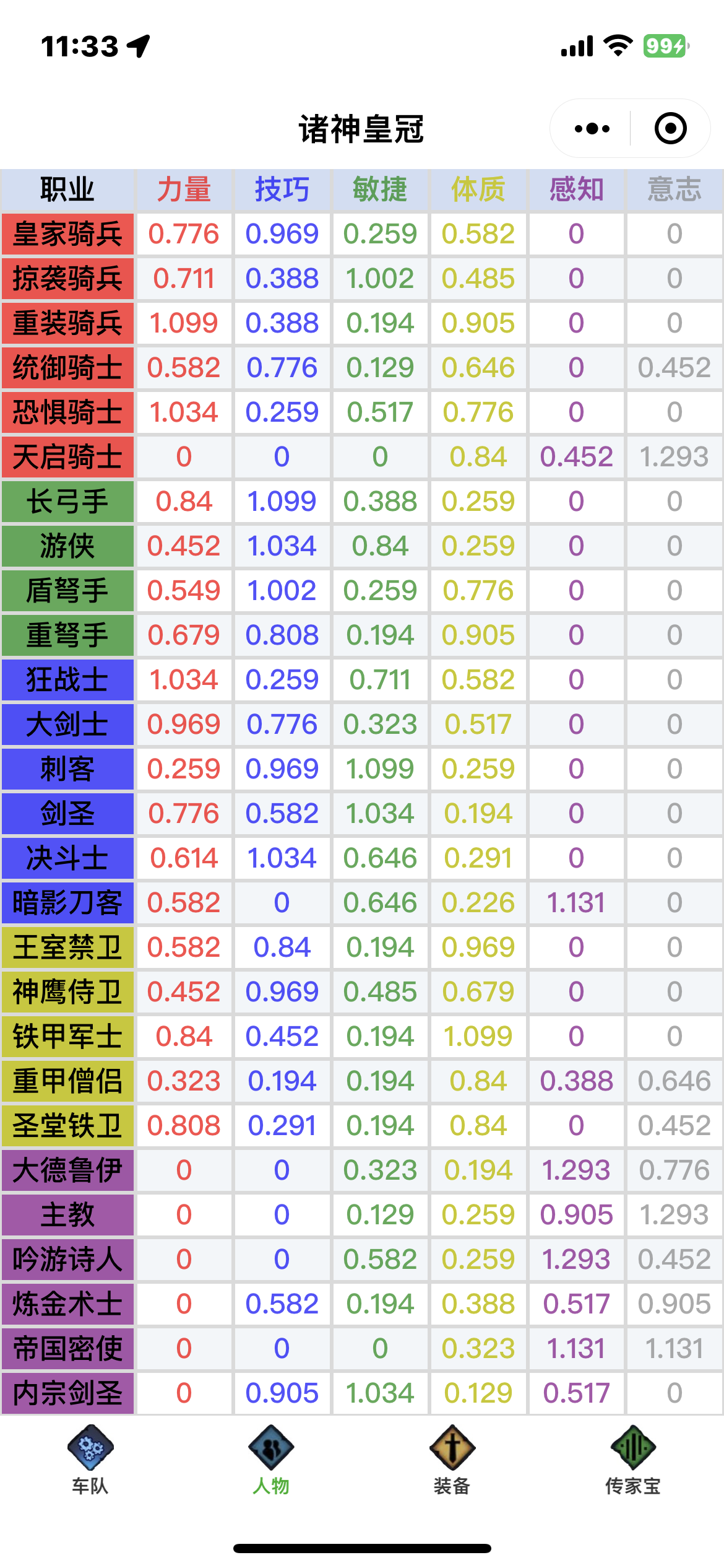 因父充分解决了命中率和意志的利用,那么我们能为铁卫提高物理伤害的方向有2个属性力、意,能达到这个标准的只有🐶都不想多看一眼的统御骑士的成长面板,统御和铁卫比低0.27左右力量成长但是增加了0.485的技巧成长降低了0.914体质成长,有些聪明的娃就要说了你都用因父了还要技巧干什么,命中解决以后技巧提供的暴击和溢出暴击率转化的暴击伤害也很香,如果把力技意三属性拉到前三强苗子属性解决了