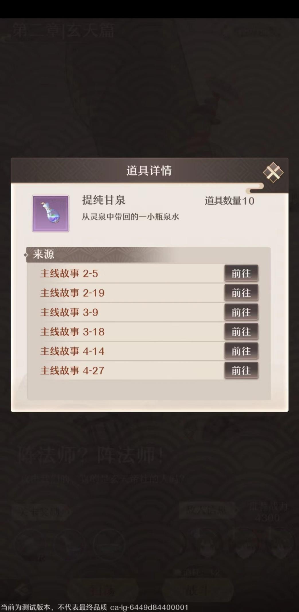 在敌人信息中,我们可以看到敌方阵容,这里推荐战力是4300,如果自己阵容角色的战力过低建议先去铸仙之境修炼。通关之后可以获得奖励:银锭、提纯甘泉、甘泉液。首通还可以额外获得仙玉奖励。银锭可以用来购买修炼用具,提纯甘泉和甘泉液可以用来培养弟子。