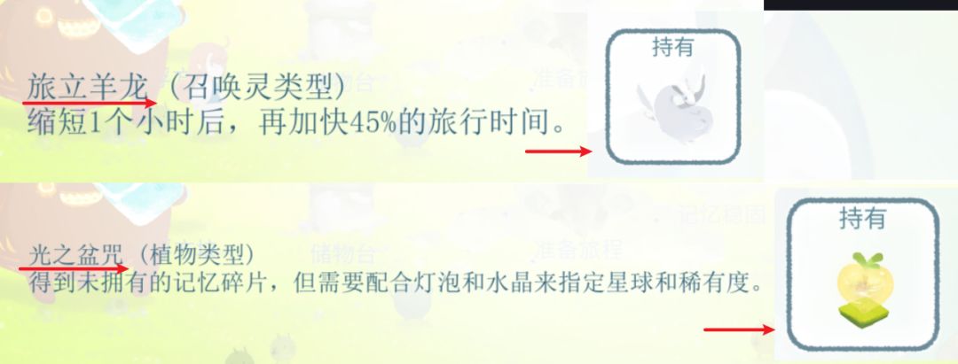 其次,如上图所示,在打开任意一个记忆图鉴(无论是否拥有)都会发现右侧的几个信息。1、稀有度,2、星球属性,3、旅行距离,补全未拥有记忆就是靠这三个信息定向旅行获得,下面会做每项具体说明。