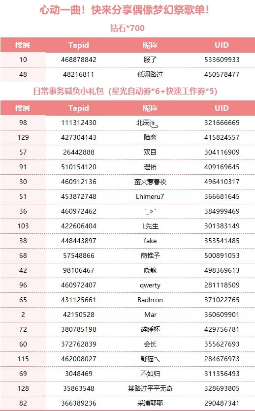 如果制作人对于奖励有疑问,可以联系客服助理君QQ:800039416 提供您的TapID以及UID进行询问哦,她们会为您核实解答哒~(请勿进行微博私信,提交给客服小姐姐处理速度更快哦!)最后祝大家天天开心,欧气满满~❤