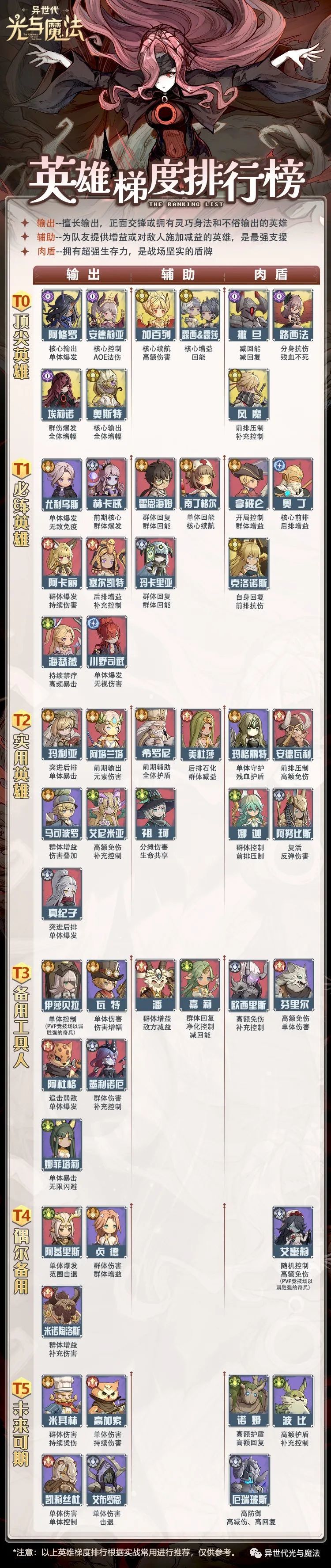 最新!《异世代:光与魔法》英雄梯度排行榜3.0来咯!