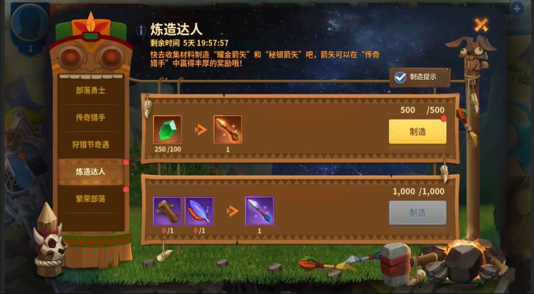 通过收集活动材料【不屈之木】和【猎鹰之羽】制造【秘银箭矢】,或使用宝石制造【耀金箭矢】。箭矢可用在传奇猎手中赢取丰厚奖励!