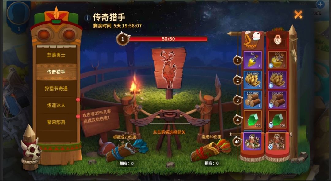 狩猎节期间可使用两种箭矢攻击木牌,【耀金箭矢】可以造成更高的伤害,助各位领主更快地解锁进度,领取奖励~每击倒一个野兽牌即可解锁对应奖励。一共有两条奖励线待您解锁,包含狩猎节限定装扮在内的丰厚奖励在向您招手啦!