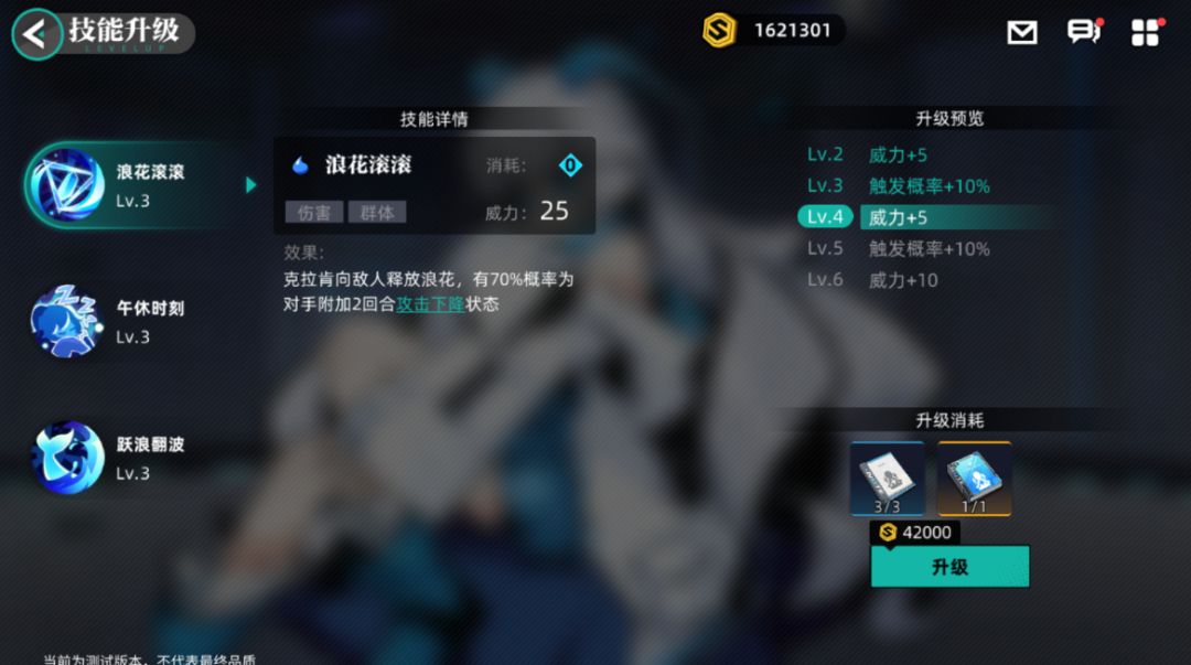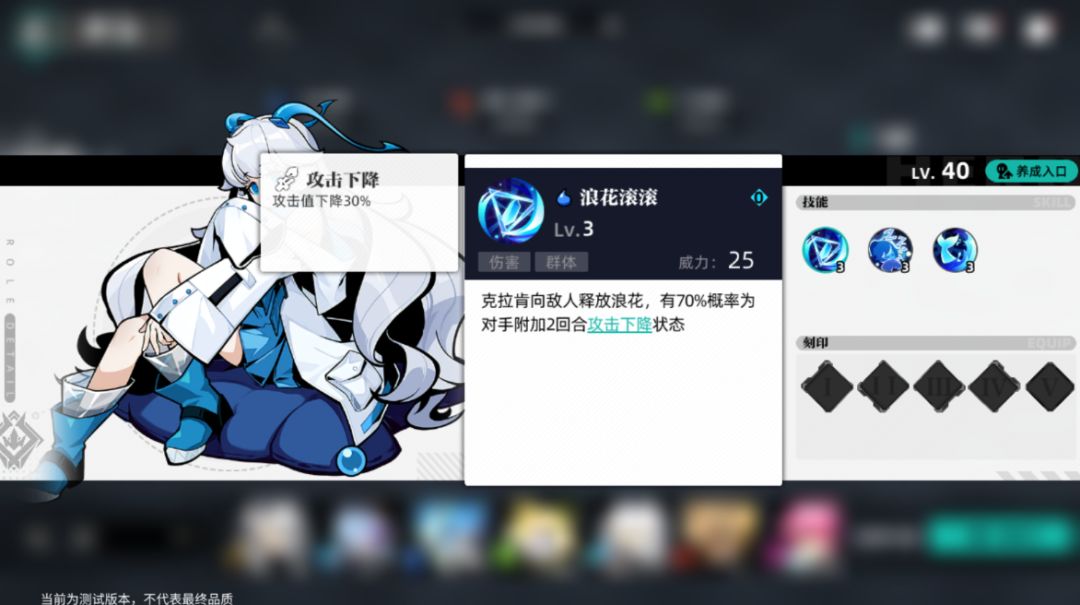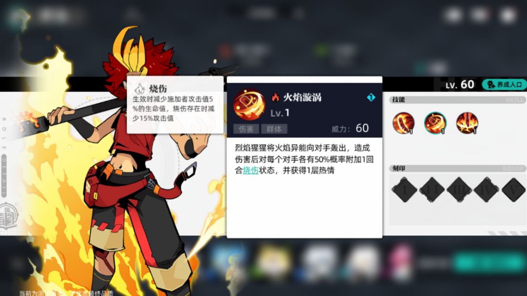 这个角色在开荒期的泛用性比较强,核心技能是2技能的群攻加全体挂烧伤,这个技能相当于全体混伤加全体15%降攻,无论是打BOSS还是打主线杂兵都非常好用。