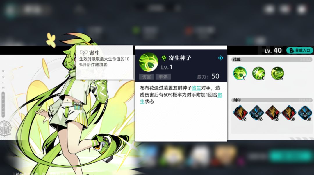 在本文推荐的阵容中,优先级最高的是布布花的寄生种子,3级给的20%命中率非常重要,而5级的多一回合持续时间可以稳定触发3技能的中毒。