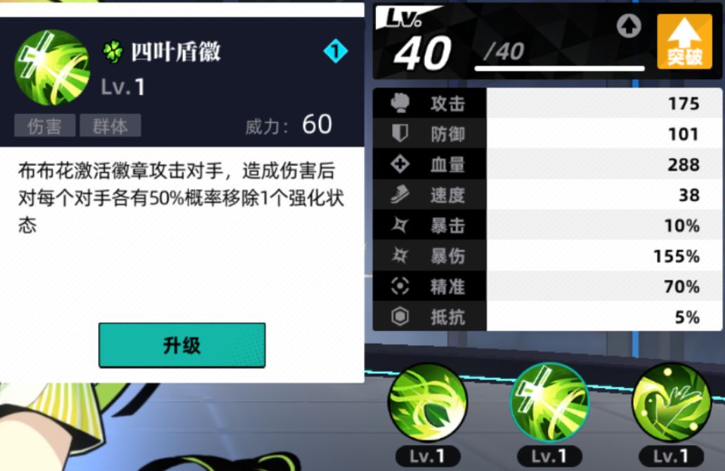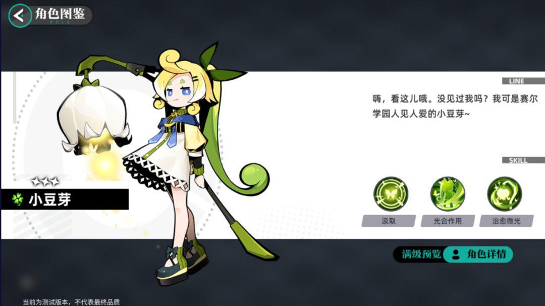 没得选的时候就只能用三星角色小豆芽了,小豆芽的大招在升级之前纯摆设,1级倍率只有10%。等小豆芽下岗后可以丢到后排,前排掉人后可以把她换上前排放大招全队奶。