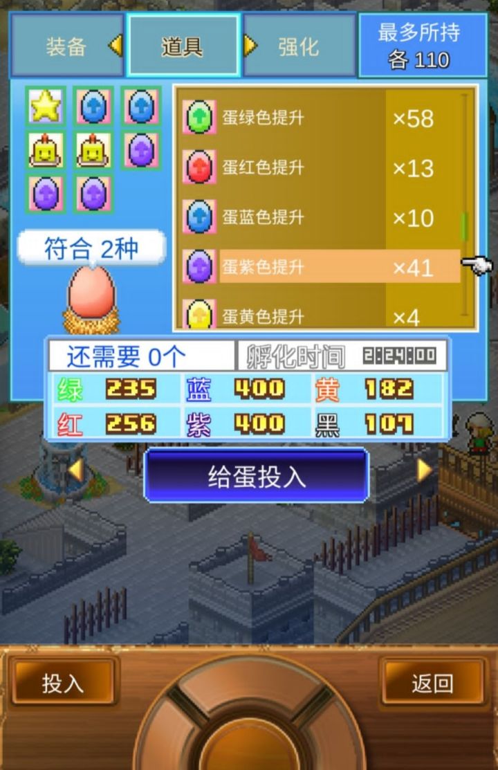 回归正题,我们需要把色素提升到上面的最低要求,然后把蓝色素提升到400左右,紫色素同样提升到400左右,其余色素看情况填,只要不低于最低要求都行。然后如图,孵化情况就会有两种情况,一种是波波利,另一种就是歪罗君王改了,所以不是歪罗,就是波波利,如果是波波利,看一个广告之后必是歪罗!下面图片展示成果,同时也有四星蛋和三星蛋孵化图。
