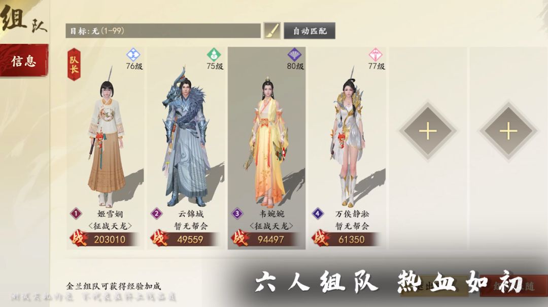 我们还对组队进行了调整,重现六人组队模式,队伍更加热闹有趣、战斗更加充满激情,也能让少侠感受更原汁原味儿的天龙社交!