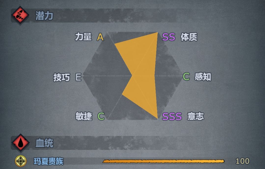 再讲一下每个王血对应的六维.下面分别是每个王血的大概六维。