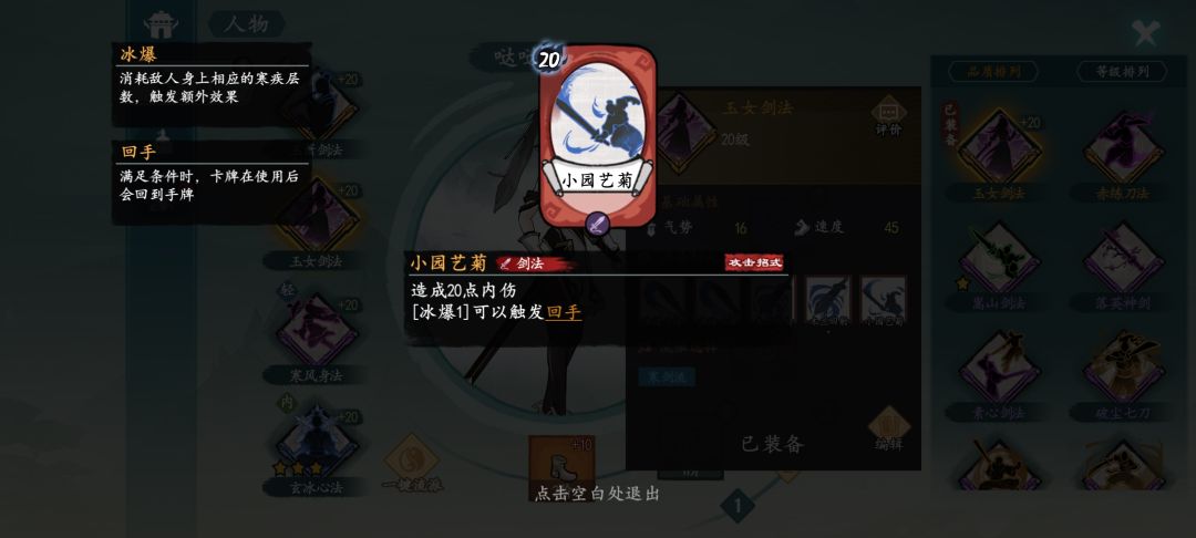 玉女剑法升级解锁卡牌 小园艺菊 触发回手就是攻击了又回到手牌可以继续攻击(配合寒疾 冰爆就是寒疾)