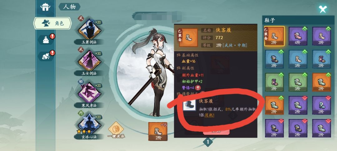 这里我用的是玄冰心法 寒风身法 (前期没得选抽啥用啥)