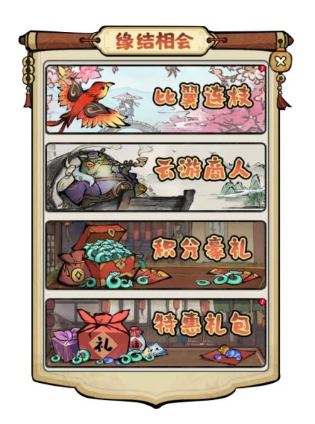 ❤活动期间内,在“比翼连枝”活动中获得的【连理枝】,可在云游商人处兑换珍稀道具。