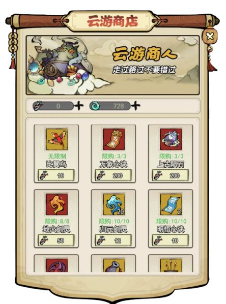 ❤活动期间内,每次放飞“比翼鸟”必获得一个“连理枝”,“连理枝”可在云游商人处中兑换各类珍稀道具~
