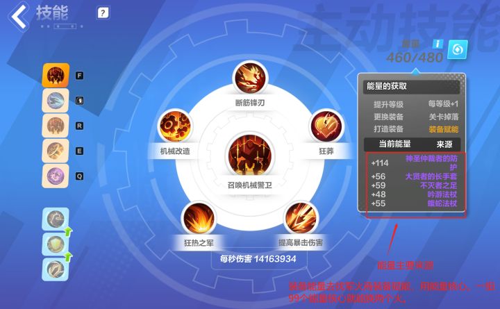 (1)技能升级和辅助技能搭配(搭配可以看英雄榜)。注意点:要有能量才能开辅助技能圆环,能量主要部分来源是装备赋能,装备赋能找军火商。注意点:被动技能要激活才生效,被动技能有魔力封印的比例或数值,全封了你就没有蓝使用技能了,每个技能都有标签,分析技能时注意结合标签。