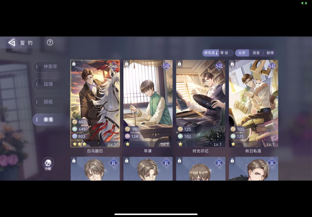 谁懂我的痛苦,不算新手教程十连抽的,首充送的,碎片换的,我一共六张ssr,3张暴雨之夜,2张风间低语,1张指尖盛夏……