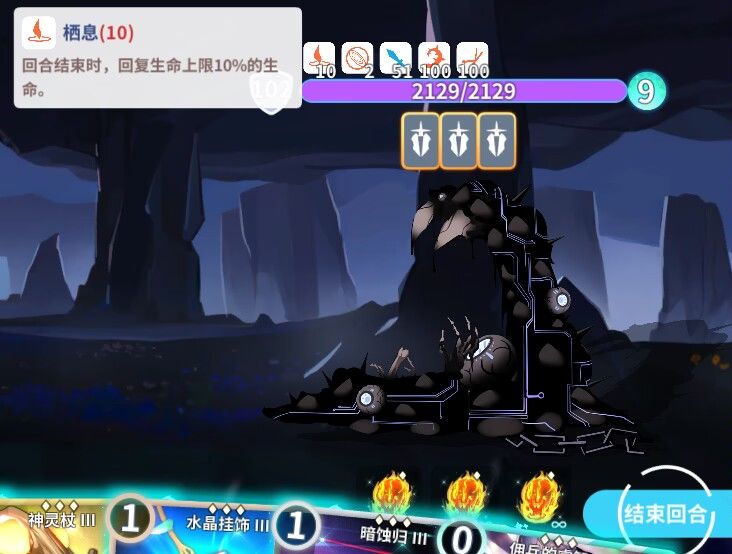 魔王有个非常狠的技能每回合会往你的卡组塞一张负面buff牌这个问题我一直不能很好的解决,有办法大佬可以补充一下。打魔王大人突出一个看脸,脸不好你动都动不了一下,打起来会很难受一定要多加注意。魔王大人目前是我认为翻车的概率最大的boss。。。