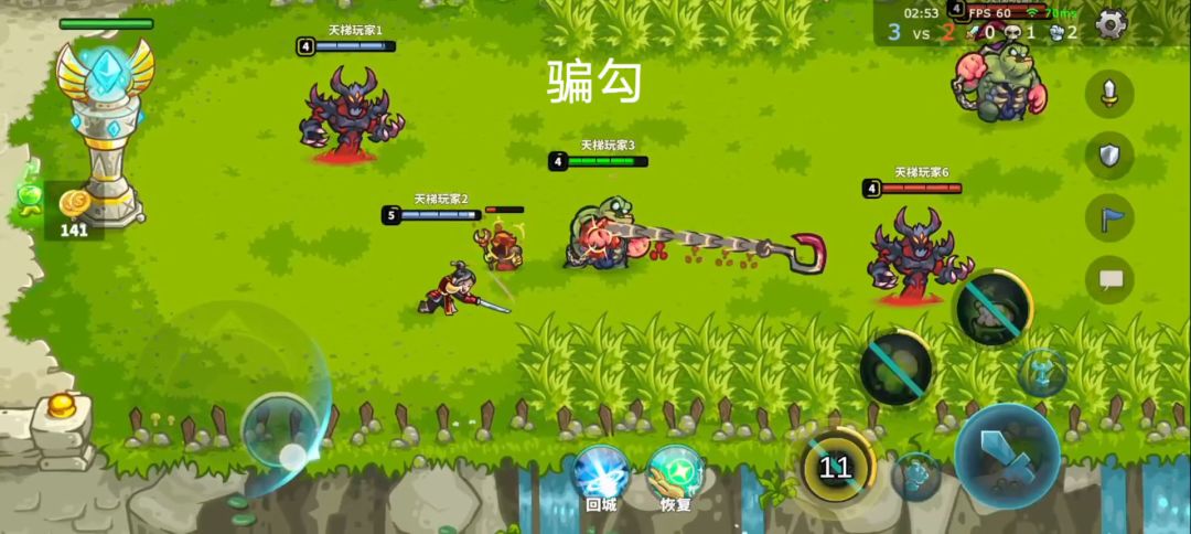 二(cd压制打法):敌方前期比较弱势自己这边手长爆发高,那么小胖就可以占住长草丛频繁勾人,出cd装打压制磨塔