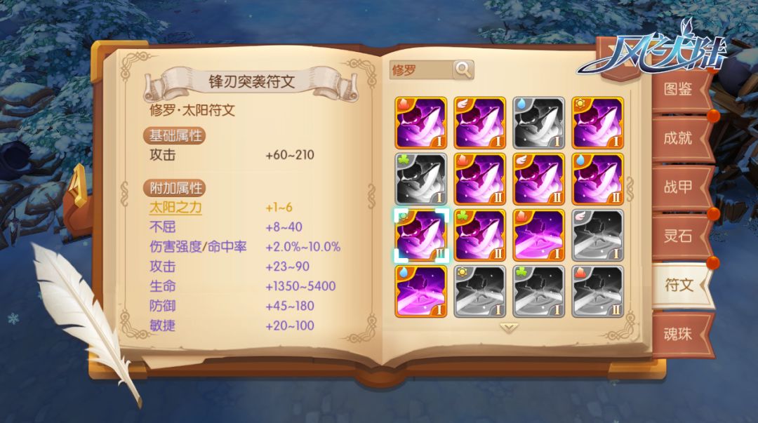 镶嵌对应的符文,也是提升角色6大属性的主要途径之一。