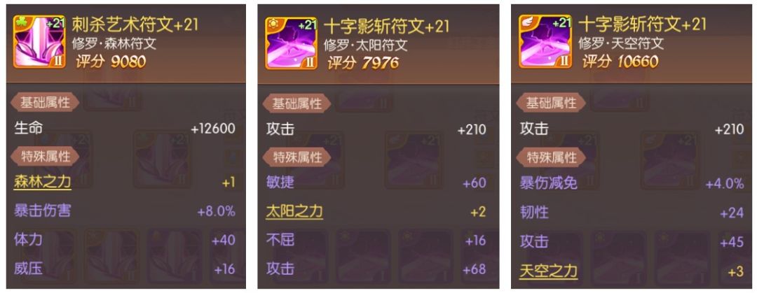 众所周知, 不同种类的金色符文,技能效果都各具特色。符文在强化的过程中,也有机会获得随机的属性,比如攻击、防御、生命、命中率,以及不屈等重要属性。