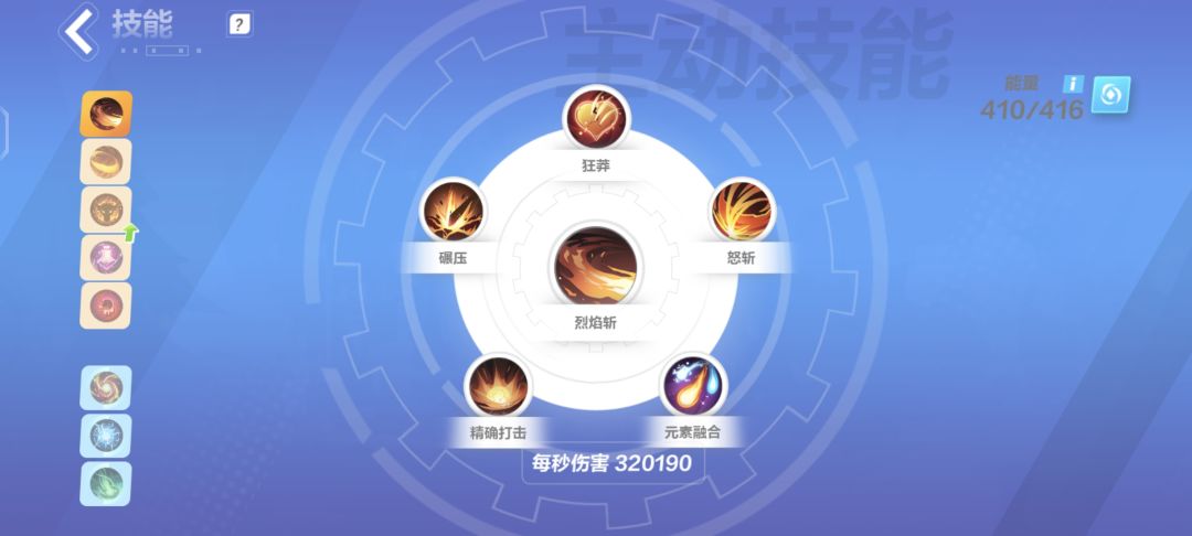 核心肯定是暴走兵刃和烈焰斩,一个平时刷图用,一个攻坚啥的boss爬塔用,伤害差距还是挺大的。被动的话小伙伴们可以根据自己的装备选择(我选的都是简单粗暴的加伤)。其他的有连续攻击、二重斩击、奇袭啥的都行。