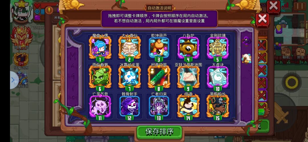 没错,还是老规矩!无敌的万灵~这套可以帮助无法通关50层的你更多加一个思路(能卷排名的也可以拿去整活)~竹笋笛子之类的都没有也无伤大雅,换几张卡随便凑数就好啦~关于琉璃,它的作用是让2段技能的凯瑟琳可以成功用无敌时间抗渡劫伤害~(锤子2也行),虽然火鸡翅的无敌时间比较长,但是鸡翅不好控制,可能点太快阵法放错了,所以还是琉璃实用点~渡劫更简单的就是进去第一关的商店就一直进进出出直到遇到赌金币的小丑,就可以依靠对话来规避雷劈伤害~