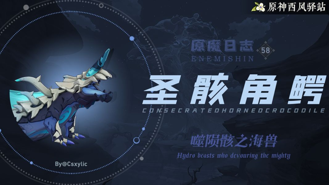 HELLO 这里是喜欢研究原魔的C茉 ,本期的原魔日志-58期将带来3.6新加入的圣骸:圣骸角鳄,海鳄与魔神残骸的结合体,深渊五大拦路虎之一,会使用多达7种的招式,高抗,和大量的挤压性技能,使得其相当难对付。闲话不多说,咱马上来看技能机制: