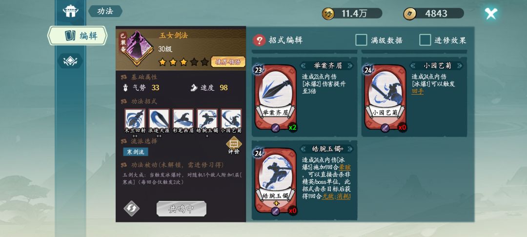 总结 武学的叠寒疾招式和寒爆招式必须平衡 起手招式建议带两个 不会搭配的可以参考我的 可能也有问题 欢迎大家讨论