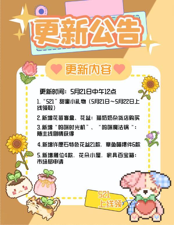521更新公告!一起来可爱村种花,上线还送可爱小狗!