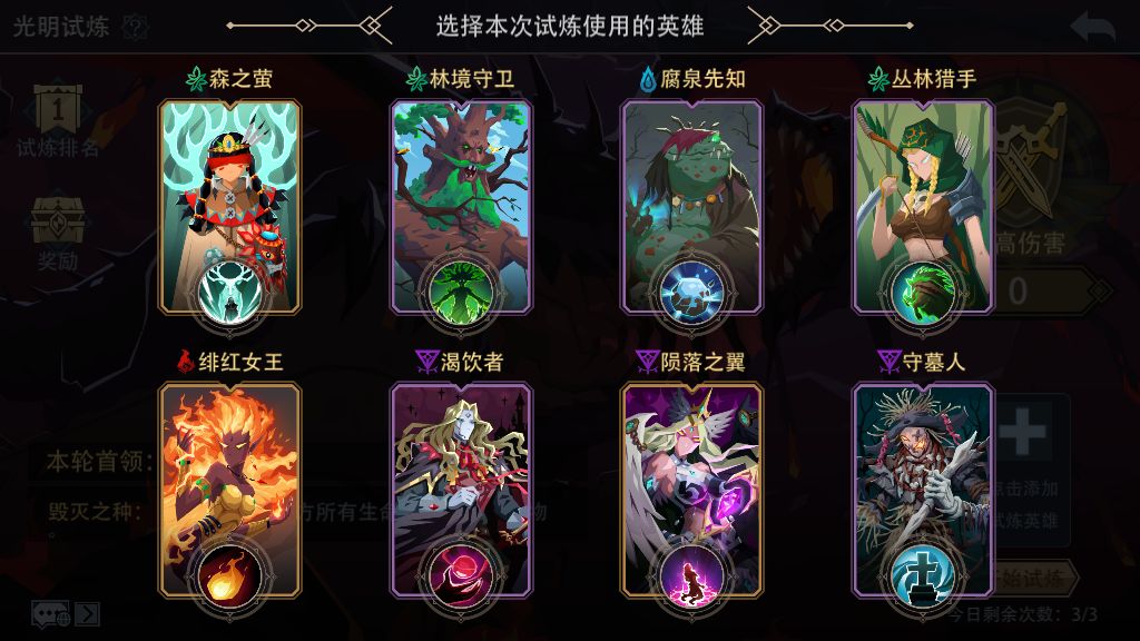 蘑菇补血流:(孢子+树妖+低语者+生命古树+治愈之风等)该常规打法一般可以拿满魔晶奖励,2000分伤害打满需要的条件较高。