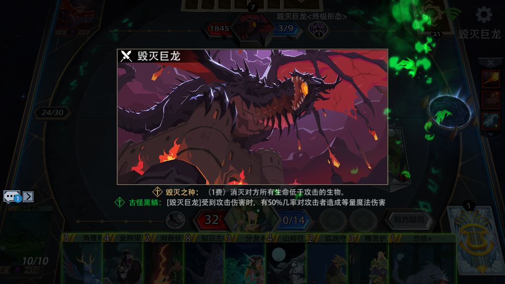 boss攻略技巧:该boss为清场型boss,卡组多针对生物,同时要注意红龙和分裂+的法伤组合,且主动技能会消灭攻击大于生命的我方生物,因此较为推荐木系的蘑菇补血流+秘法比蒙透骨流组合(为我方生物回血且对方卡组中生物攻击普遍较低)或是水系卡组中带有静默之咒(废掉boss主动技能),同时要注意在造成150的伤害后我方生物对敌方boss的直接攻击会出现50%概率的魔法反伤。