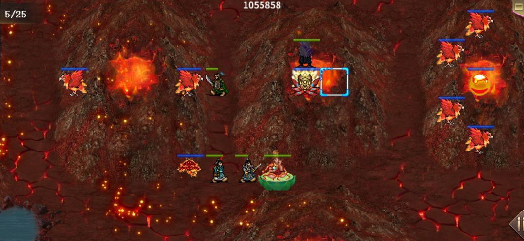 第七回合,(最后一回合,超过回合即全员死亡失败)沮授打掉朱雀,吕布打蛋蛋,然后回归沮授打朱雀,刚好结束。