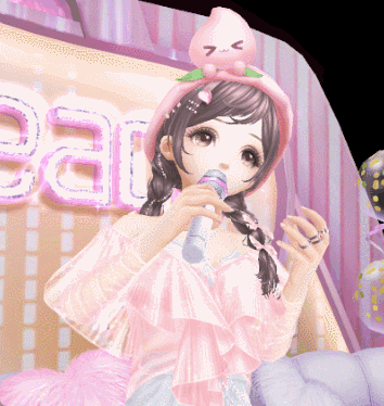 她俏皮地拿起麦克风,纵声歌唱,这是心动的感觉~