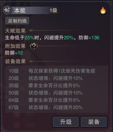 4.本能:生命低于35%时提高闪避20%和防御(满级时闪避可提高到60%)