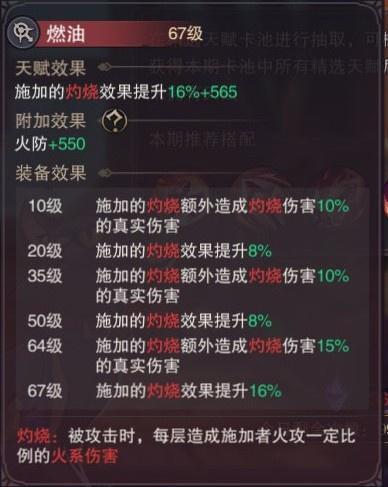 9.燃油:可提高灼烧效果并让被灼烧者受到伤害时附加一定量的真实伤害(满级灼烧效果+48%,附加真实伤害+35%)