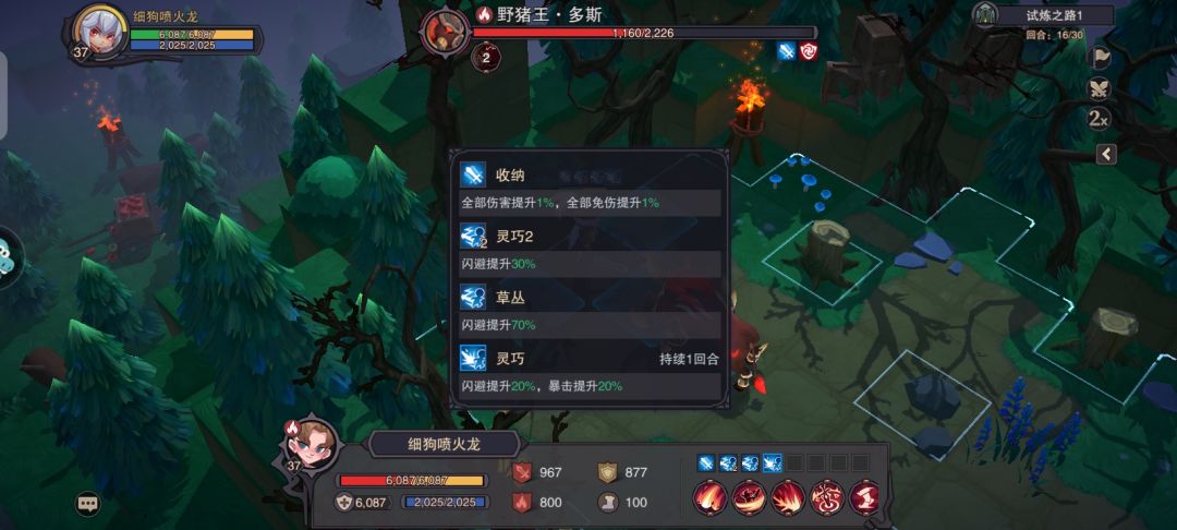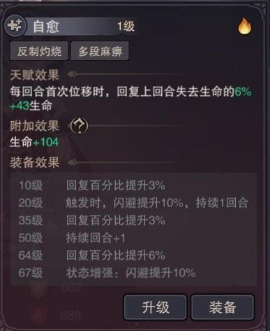5.自愈:每回合首次位移时,回复上回合失去的一部分生命值(触发回血时最高可提高闪避+20%持续两回合)