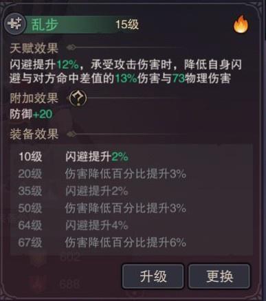 3.乱步:基础闪避+12%承受伤害时,减少自身闪避与目标命中差值13%的伤害(满级闪避+20%)