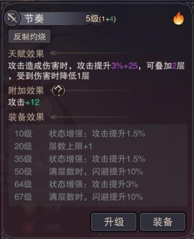 1.节奏:每次攻击加伤害最多叠加3层(满层时闪避+20%)