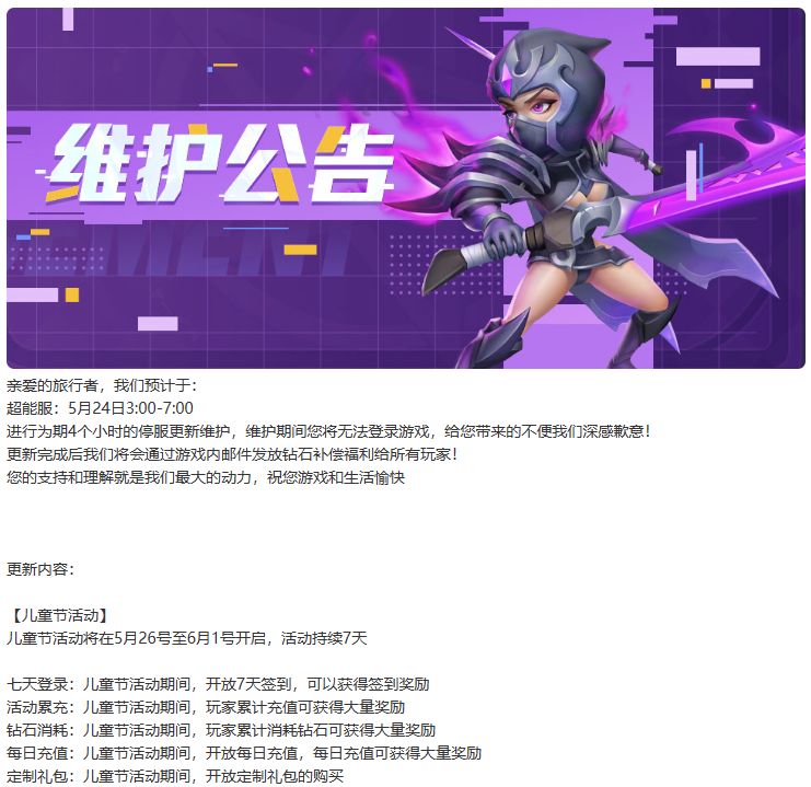 【维护公告】5月24日维护更新公告