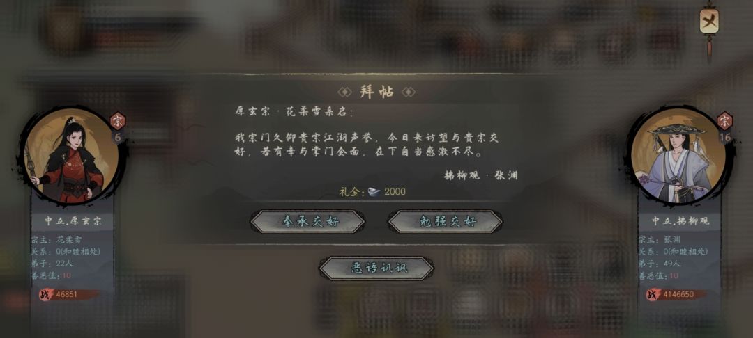 在我发现这个邻居离我非常近时我是害怕的,害怕他将我建造的宗门彻底毁掉,但仔细研究后才发现似乎玩家的宗门不可被摧毁?虽然因为这个发现心情平静了点但萌新的我意识到了一个问题,那就是如果没有实力总有一天可能就会被其他玩家打上门来。到时候会发生什么身为萌新的我无法想象......
