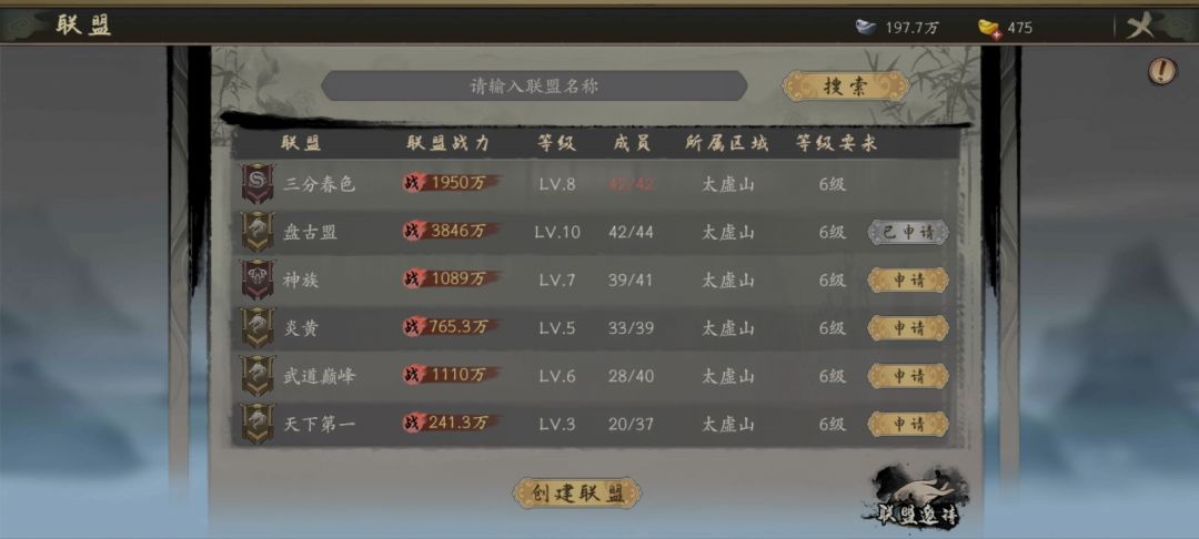 于是无聊的我第1次开始探索起了这个游戏的各项功能,就这样,我发现了联盟系统,看着里面的联盟不知谁弱谁强,也许很多玩家会创立一个联盟,但我是生活玩家,所以选择了自己看起来最强的。随后,我又去探索了一下其他的功能。