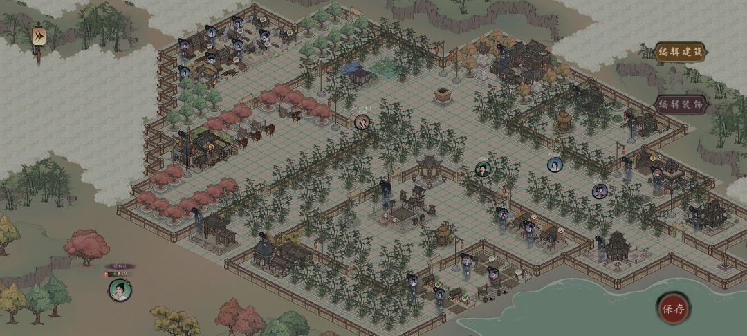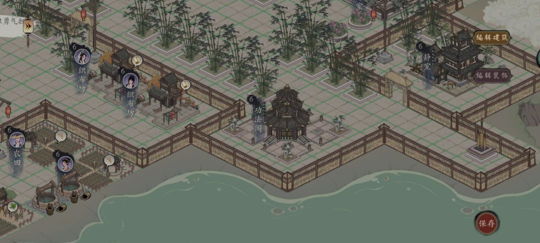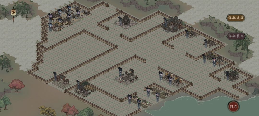 比如在左边立了面墙把做衣服的放了进去,比如把仓库放在了一个很多人心理方面都不会认为仓库所在的地方。突然这时到处建墙的我想到了什么,竖起了一面墙,就能影响心理和美观以及客人和弟子视觉感官方面。我为何不能竖起一堆墙试试水?于是作为行动派的我开始了。