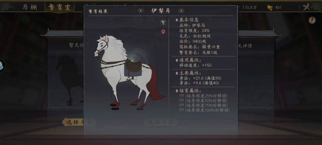 在探索的过程中我开启了一个全新的功能,我发现这个功能里竟然可以培育马儿,这让频繁打瞌睡的我精神了点,开始期待会诞下一匹什么样的小马?颜色会不会很好看?数据那些倒没怎么关心。