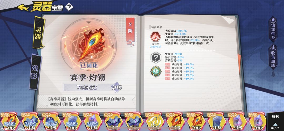 灼翎:解封2 叠加五层有119伤害加成,主要神魂之一。必带