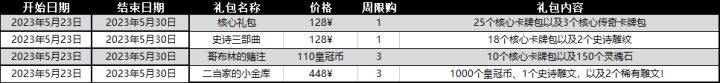 为了更透明地告知大家我们的促销礼包情况,我们每周一都会预告周二的促销礼包:5月23日-30日礼包轮替见下图