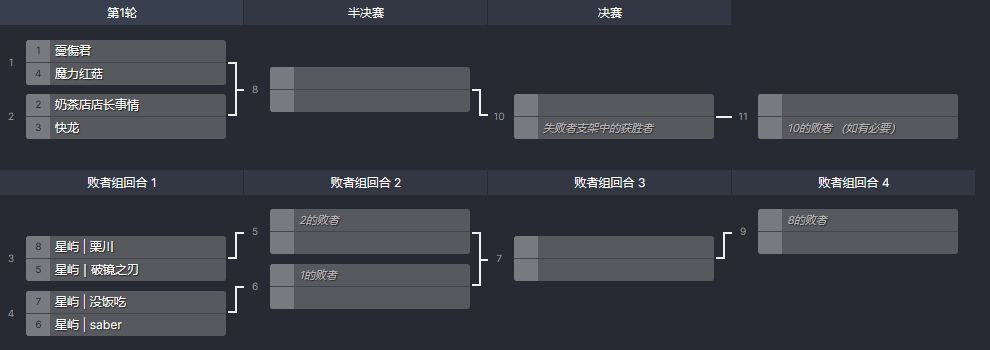 败者组出线选手:星屿|栗川,星屿|破镜之刃,星屿|没饭吃,星屿|saber