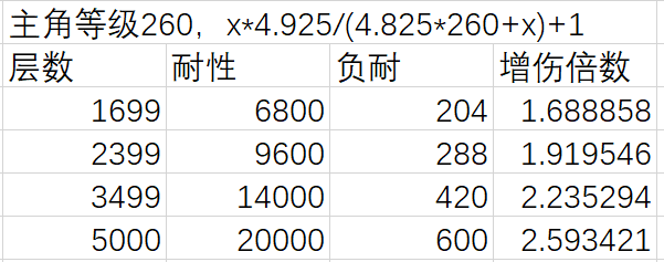 增伤倍数=x*4.925/(4.825*主角等级+x)+1