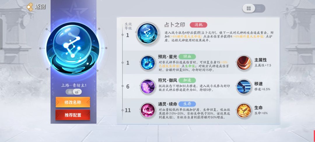 第七件看情况,控制补锤子,伤害补吸血刀,坦度补天魔,反正视情况而定,一般出锤子。然后考虑到,鬼黑的战场收割能力是比较强的,所以阴阳术这里一个不同的,就是11级带了续命,有站场,才有收割嘛。另外,有人可能会说,灭还能回血呢。但是,前提是击杀好吧🤔🤔。