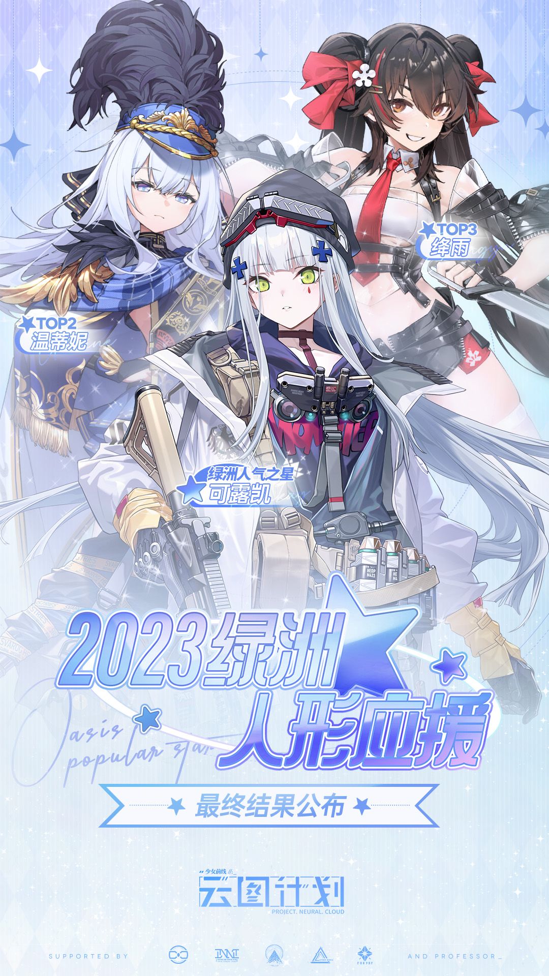 亲爱的教授,截至今日18:00,2023绿洲人形应援活动圆满结束,人气值前三名诞生!