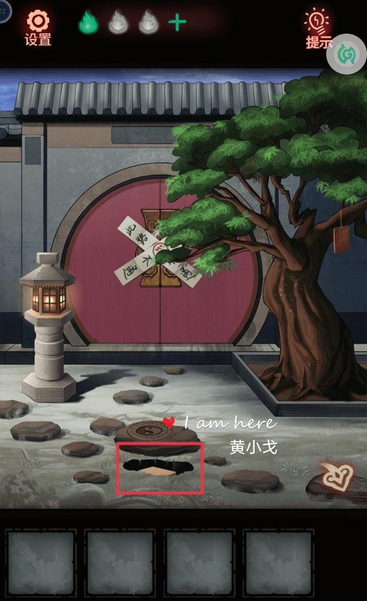 19.(院子-左边场景)点击画有八卦图的石头,放入【白色勾玉】
